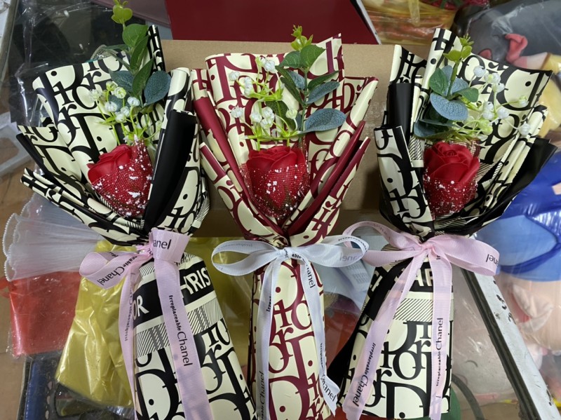 Một bó hoa sáp từ 1-3 bông bao gồm cả túi và thiệp giá chỉ có giá từ 15.000-50.000 đồng. Đơn cử, bó hoa hồng, hoa tulip 1 bông có giá 15.000-20.000 đồng/bó; hoa hồng 3 bông có giá 35.000 đồng/bó, tulip 3 bông có giá 50.000 đồng/bó...