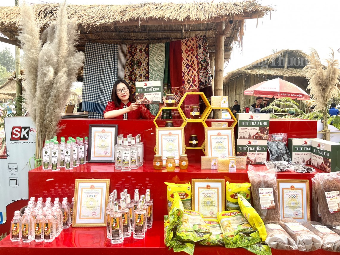 Một số sản phẩm OCOP của huyện Điện Biên Đông (Điện Biên) trưng bày tại không gian văn hóa vùng cao