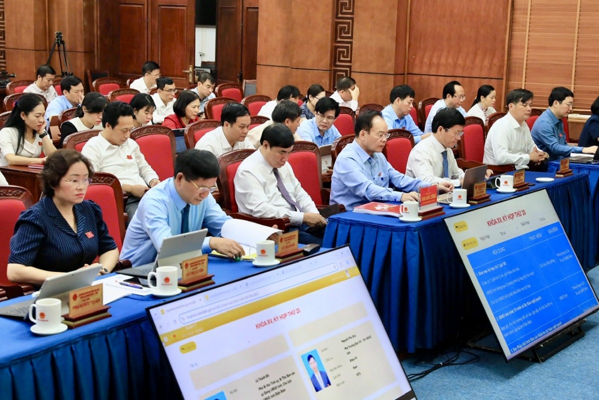 | Kỳ họp thứ 20 Hội đồng Nhân dân tỉnh Điện Biên khóa XV, Đề án sắp xếp, tổ chức lại đơn vị hành chính cấp xã đã được thông qua với tỷ lệ 100% đại biểu tán thành. Ảnh: Thủy Lan |
