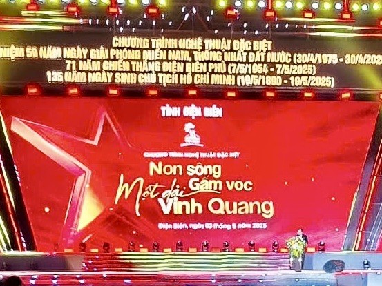 Tối 3/5, tại Sân vận động tỉnh Điện Biên, UBND tỉnh Điện Biên long trọng tổ chức Chương trình nghệ thuật đặc biệt với chủ đề: “Non sông gấm vóc - Một dải vinh quang” chào mừng kỷ niệm 50 năm Ngày Giải phóng miền Nam, thống nhất đất nước (30/4/1975 – 30/4/2025); 71 năm Chiến thắng Điện Biên Phủ (7/5/1954 - 7/5/2025), 135 ngày sinh Chủ tịch Hồ Chí Minh (19/5/1890 - 19/5/2025). Chương trình là điểm nhấn trong chuỗi sự kiện văn hóa, nghệ thuật và du lịch diễn ra tại tỉnh Điện Biên nhân dịp trọng đại này.