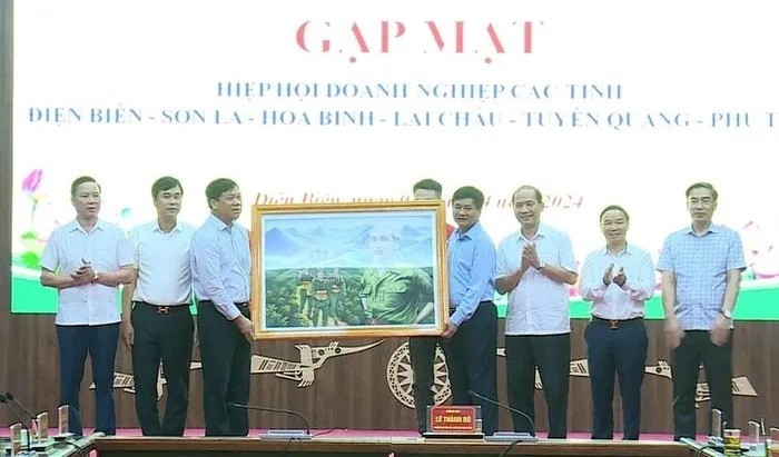 | Hiệp hội doanh nghiệp các tỉnh Điện Biên, Sơn La, Hòa Bình, Lai Châu, Tuyên Quang, Phú Thọ tặng quà lưu niệm cho UBND tỉnh Điện Biên. |