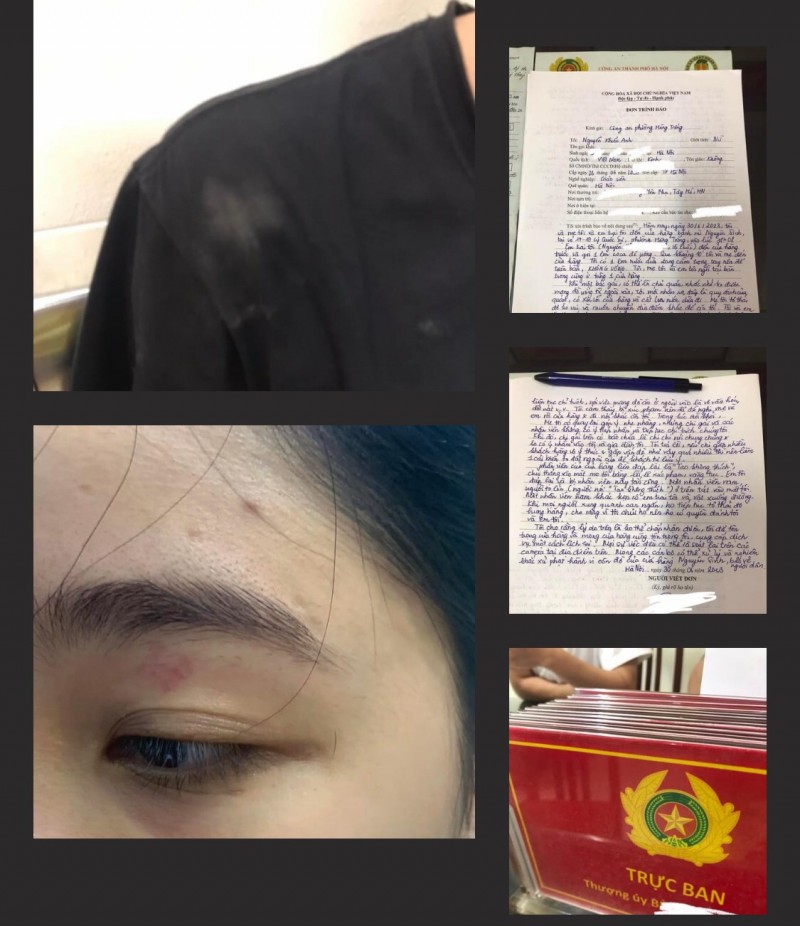 Trong đơn trình báo của gia đình, lúc lời qua tiếng lại giữa 2 bên, một nhân viên cửa hàng bánh mỳ này đã có hành vi tát vào mặt chị N.T.A và nhân viên khác kẹp cổ, vật ngã em trai chị A. xuống đường.