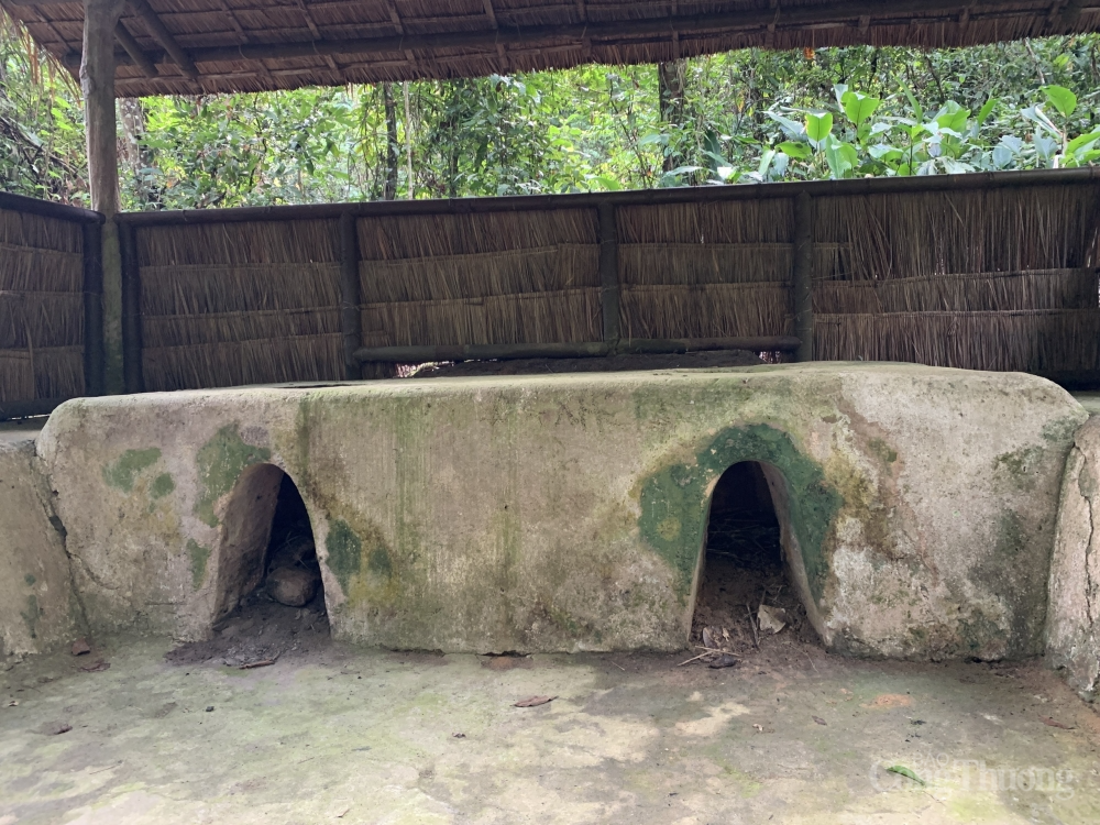 | Những lúc quân Pháp ném bom dữ dội, Đại tướng làm việc và nghỉ ngơi trong hầm trú ẩn này. |