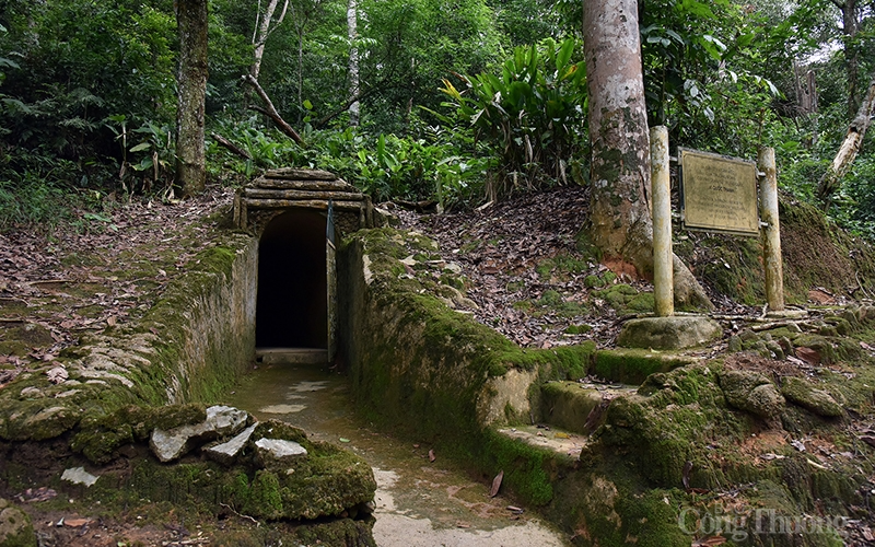 | Bên trong đường hầm còn là nơi trú ẩn dự phòng tình huống khẩn cấp. Đường hầm cao 1,70m, rộng từ 1 đến 3m, giữa đường hầm có một phòng họp diện tích 18m2 và 5 vị trí đặt máy thông tin liên lạc. |