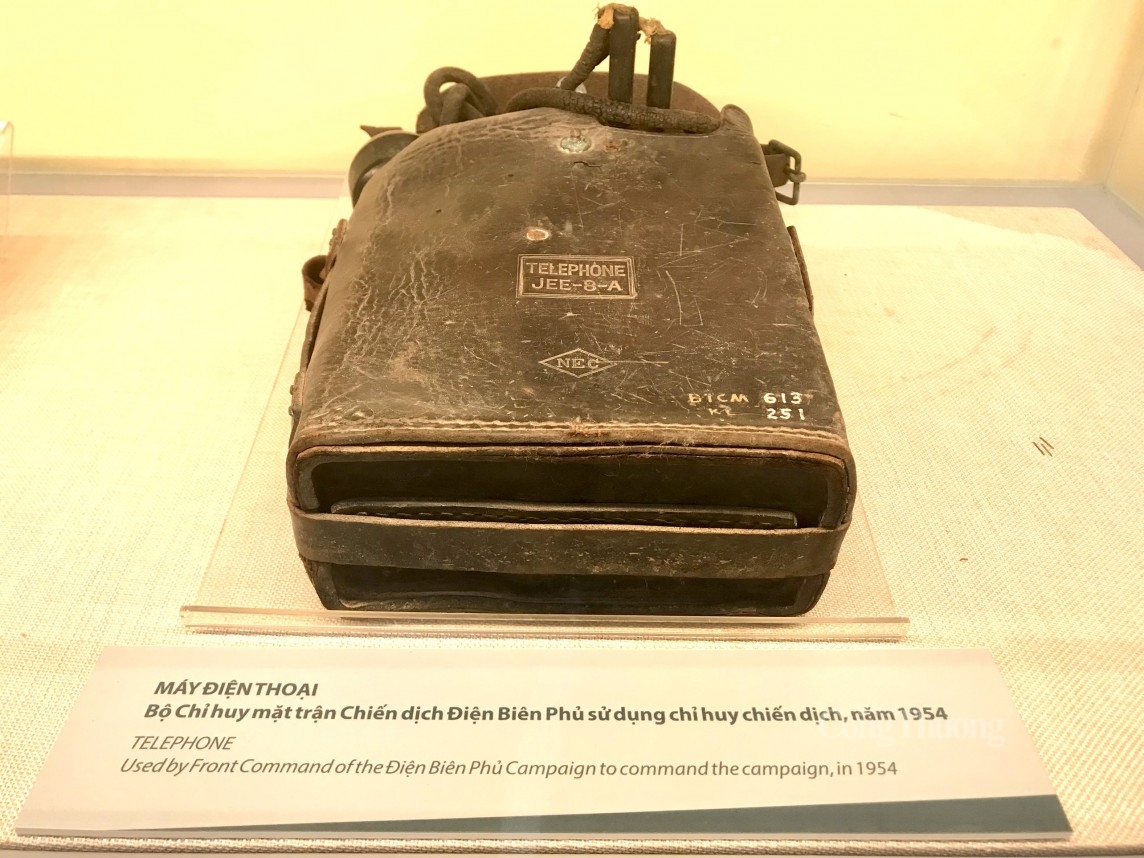 | Máy điện thoại Bộ Chỉ huy mặt trận chiến dịch Điện Biên Phủ sử dụng chỉ huy chiến dịch, năm 1954 là một trong các hiện vật giá trị được giới thiệu tới công chúng Ảnh: HQ |