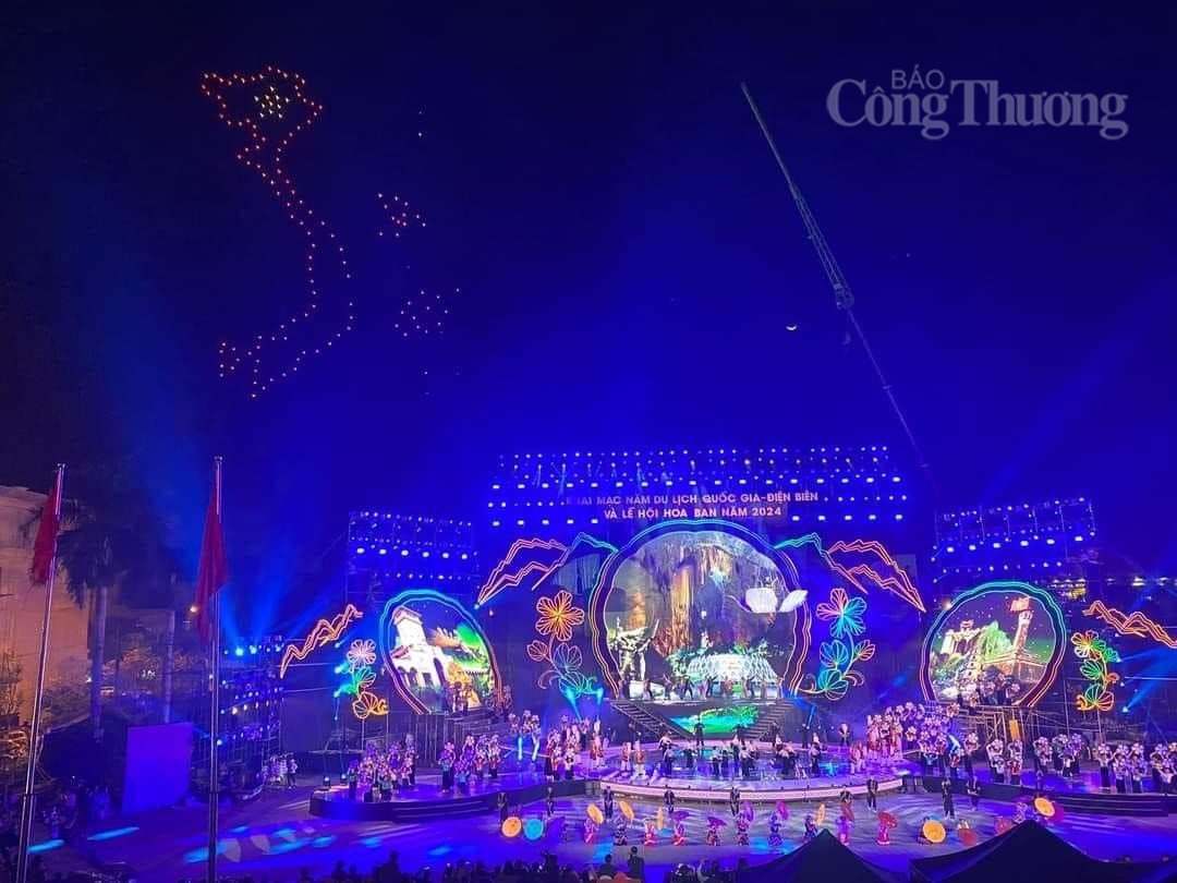 | Chương trình nghệ thuật khai mạc Năm Du lịch Quốc gia Điện Biên và Lễ hội Hoa Ban năm 2024 diễn ra vào đêm 16/3 sẽ có màn trình diễn ánh sáng nghệ thuật drone |