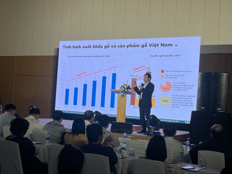 Phát biểu tại diễn đàn, ông Lê Hoàng Tài - Phó Cục trưởng Cục Xúc tiến thương mại, Bộ Công Thương cho biết, gỗ và các sản phẩm từ gỗ luôn được đánh giá là nhóm những mặt hàng xuất khẩu chủ lực của Việt Nam, đóng góp quan trọng trong kim ngạch xuất khẩu. Tuy nhiên, giai đoạn vừa qua, tình hình thế giới và khu vực tiếp tục có những diễn biến rất phức tạp, khó lường, khiến nhu cầu tiêu thụ tại các thị trường chủ lực của ngành như Hoa Kỳ, Trung Quốc, EU, Hàn Quốc, Nhật Bản…. sụt giảm mạnh. Các đơn hàng chỉ đạt khoảng 35-40% so với cùng kỳ năm ngoái. Thậm chí có thị trường gần như đóng băng dẫn đến cắt giảm lao động, đóng cửa nhà máy.