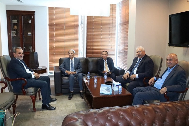 | Đại sứ Đặng Xuân Dũng và đoàn công tác làm việc với ban lãnh đạo phòng Thương mại Jordan |
