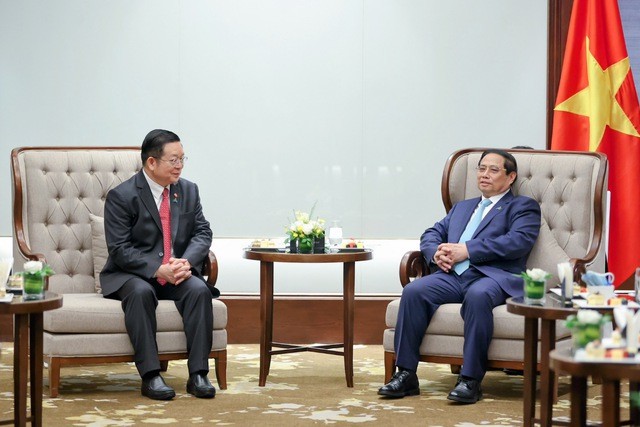 Trao đổi về xây dựng Cộng đồng ASEAN, Thủ tướng khẳng định sau gần 6 thập kỷ hình thành và phát triển, ASEAN đã đạt được nhiều thành tựu quan trọng; nhấn mạnh ASEAN cần tiếp tục ưu tiên duy trì đoàn kết, độc lập, tự cường và thích ứng trong môi trường khu vực và quốc tế đầy biến động, bảo đảm xây dựng một Cộng đồng phát triển nhanh, bền vững, phù hợp với xu thế của thời đại; cho rằng ASEAN cần thúc đẩy quan hệ đối thoại với các nước đối tác, nhất là các nước lớn, theo hướng cân bằng, đa dạng hóa, đa phương hóa, lợi ích hài hòa, rủi ro chia sẻ, gia tăng điểm đồng, giảm thiểu bất đồng vì mục tiêu xây dựng môi trường hòa bình, hợp tác và phát triển ở khu vực và vì một ASEAN vững mạnh, độc lập, tự cường và chủ động thích ứng.