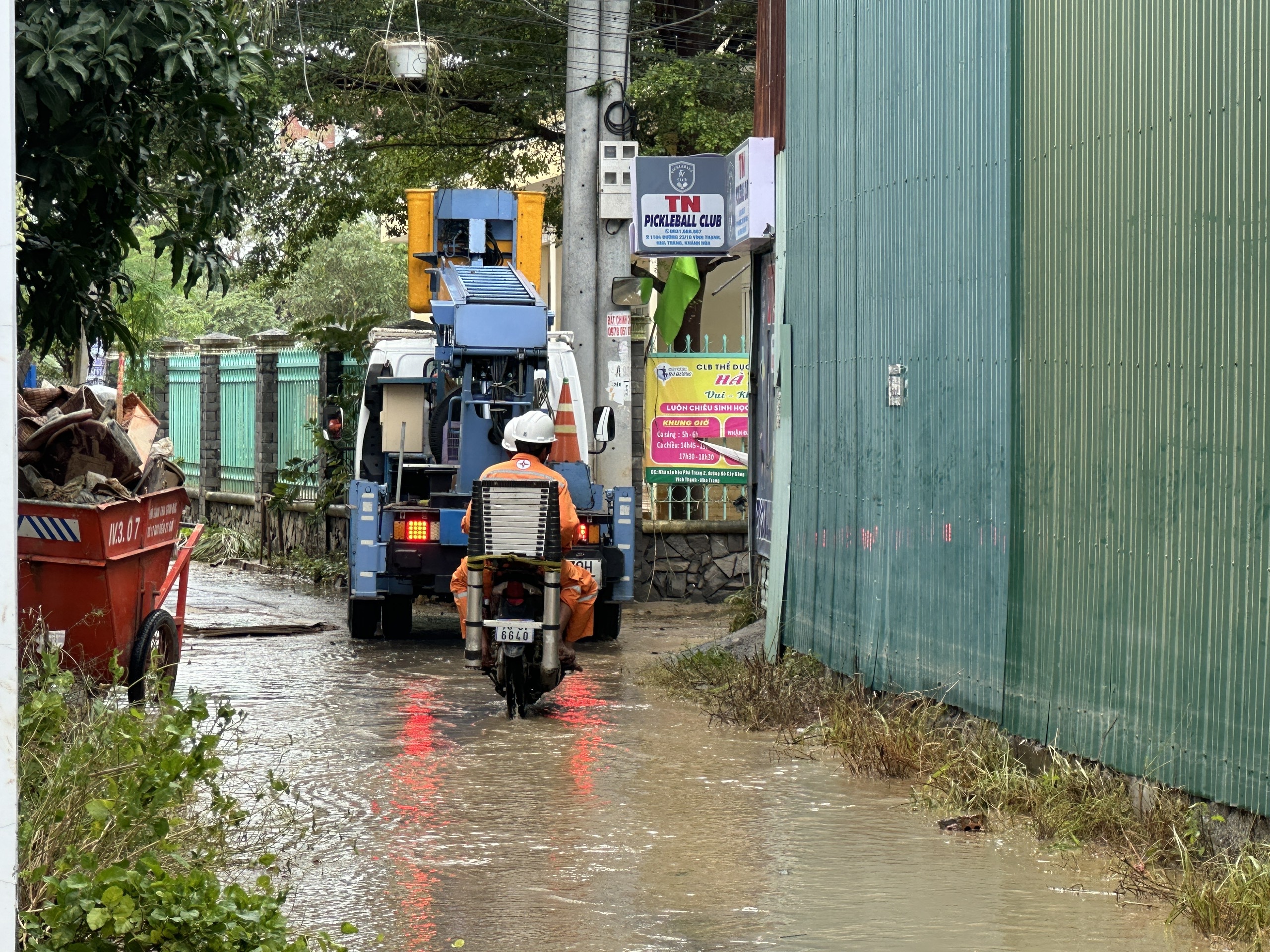Tại các địa bàn Ninh Hòa, Cam Lâm, Cam Ranh và Khánh Sơn, tỷ lệ cấp điện đã đạt trên 90%. Riêng các khu vực thuộc Diên Khánh và Khánh Vĩnh vẫn chưa thể khôi phục cấp điện hoàn toàn do còn ngập sâu, tiềm ẩn nguy cơ mất an toàn cho người dân và thiết bị. Ảnh: ĐVCC