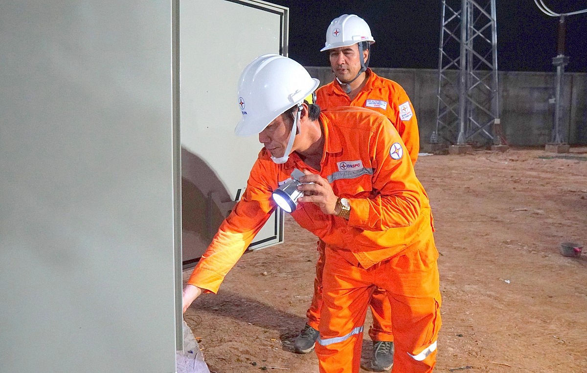 | Thực hiện công tác thí nghiệm, hiệu chỉnh thiết bị phục vụ công tác đóng điện. Ảnh: EVNSPC |