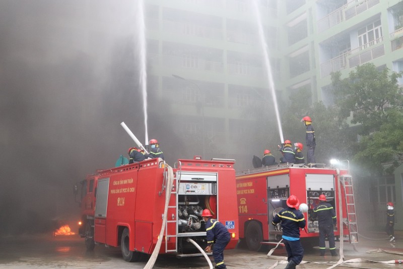 Cụ thể, Nhà máy Nhiệt điện Vĩnh Tân 4 đã phối hợp Phòng Cảnh sát Phòng cháy chữa cháy và cứu nạn cứu hộ (PCCC&CNCH) Công an tỉnh Ninh Thuận tổ chức diễn tập Phương án chữa cháy và cứu nạn cứu hộ cấp tỉnh, huy động nhiều lực lượng, phương tiện tham gia tại Chung cư CC1 phường Mỹ Bình, thành phố Phan Rang - Tháp Chàm, tỉnh Ninh Thuận, dưới sự chỉ đạo trực tiếp của UBND tỉnh Ninh Thuận.