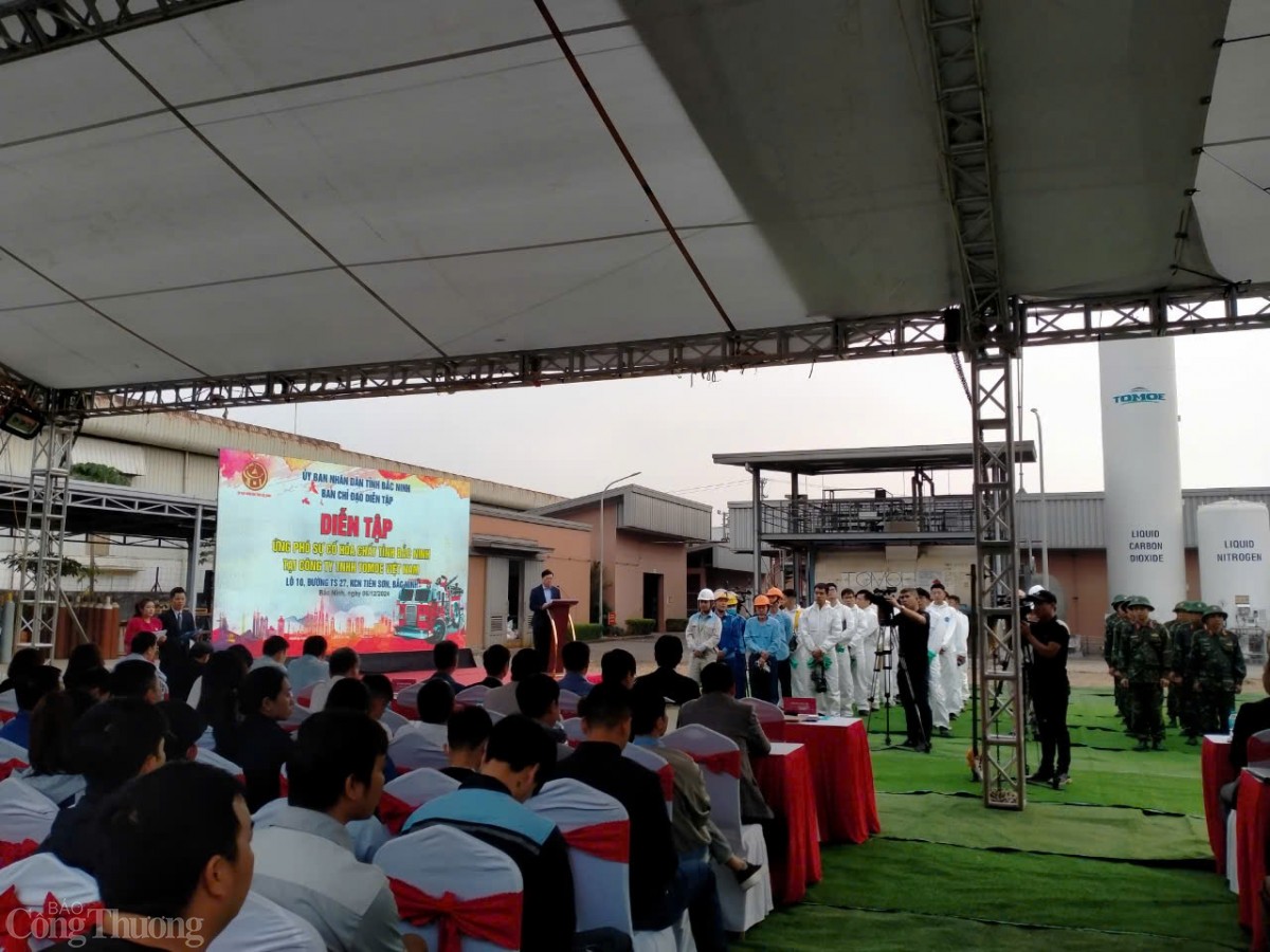 Tham dự và phát biểu tại sự kiện, ông Phùng mạnh Ngọc - Cục trưởng Cục Hoá chất - Bộ Công Thương đánh giá: Bắc Ninh là địa phương đóng vai trò trung tâm của sản xuất công nghiệp cả nước, ngành công nghiệp hoá chất tỉnh Bắc Ninh có nhiều công ty hoá chất quy mô lớn. Cùng với sự phát triển của ngành hoá chất, nguy cơ ttiềm ẩn rủi ro từ các sự cố hoá chất cũng gia tăng, nên công tác diễn tập ứng phó sự cố là vô cùng quan trọng.