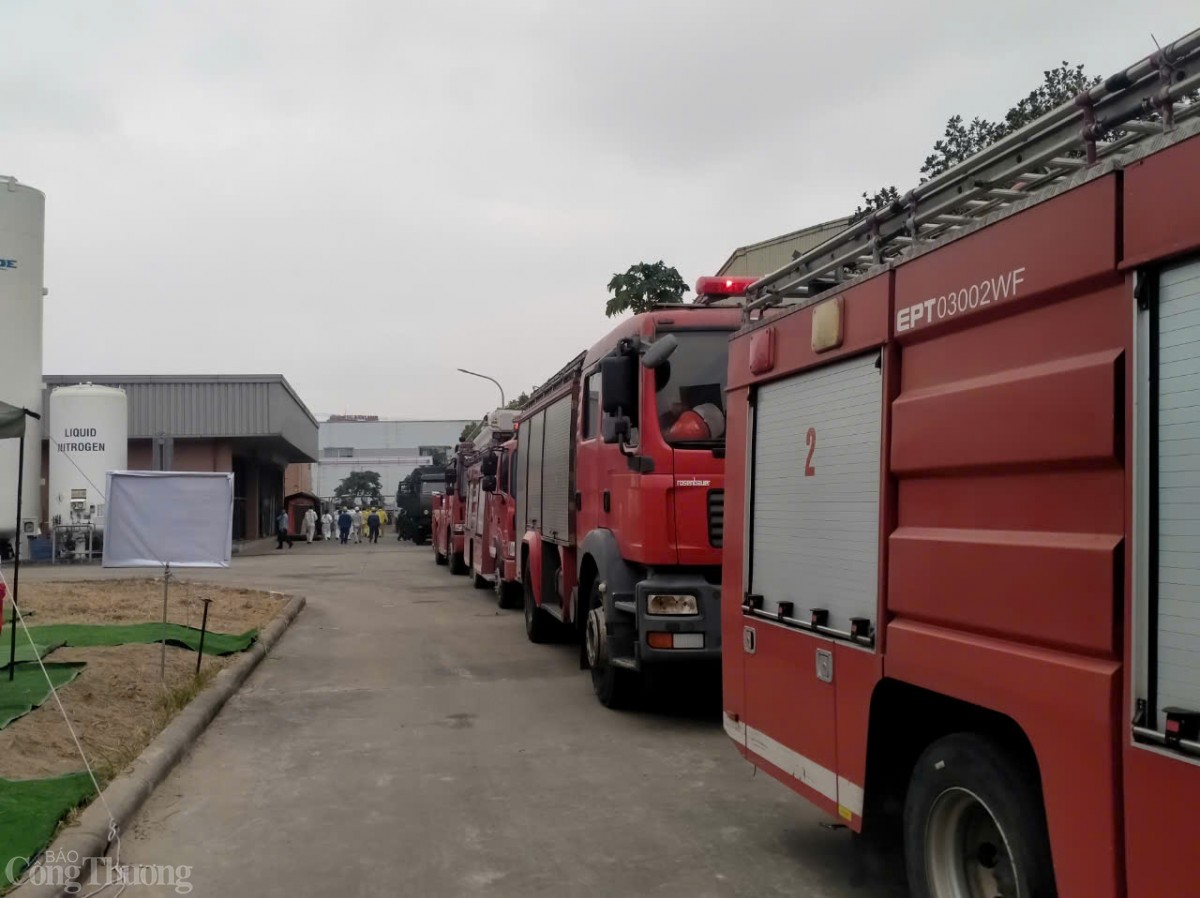 | Diễn tập ứng phó sự cố hoá chất xảy ra tại KCN Tiên Sơn, tỉnh Bắc Ninh. Ảnh NH |