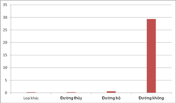Theo thống kê hàng hóa xuất nhập khẩu theo loại hình vận tải lần đầu tiên được Tổng cục Hải quan thực hiện và công bố (ngày 1/12/2016, liên quan đến phương thức vận tải trong hoạt động XNK năm 2015-PV), có 3 phương thức vận tải chủ yếu đưa hàng hóa Việt Nam ra thị trường quốc tế là đường thủy, đường không và đường bộ. Trong đó đường thủy và đường không chiếm ưu thế.