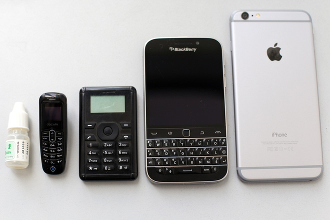 Đây là một trong những chiếc điện thoại di động có kích thước thuộc hàng nhỏ gọn nhất trên thị trường hiện nay. So với chiếc điện thoại giá rẻ của Beeline (ở giữa), Decoin còn nhỏ hơn nhiều.
