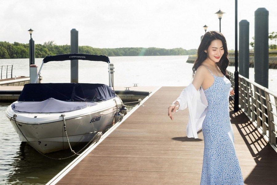 Cô nàng đã bị hớp hồng bởi một Habana Island được ví như dải lụa thướt tha giữa sông Ray và biển Đông, nổi bật với bến du thuyền đẳng cấp mà mỗi góc nhỏ đều đẹp tựa tranh vẽ để Minh Trang có thể “sống ảo”.