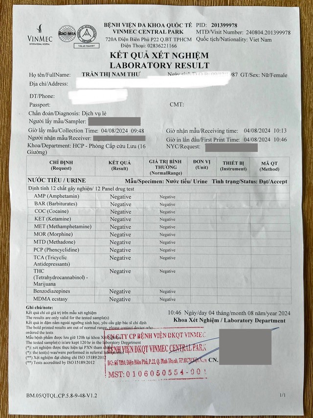 | Nam Thư đã công bố giấy xét nghiệm tại bệnh viện. |