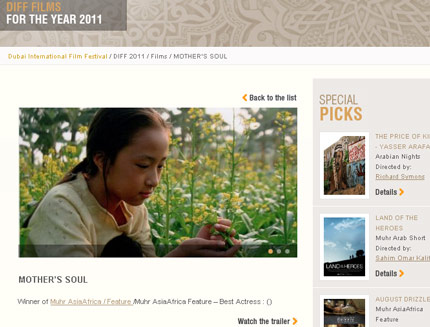 CôngThương - LHP quốc tế Dubai lần thứ 8 vừa được tổ chức từ ngày 7- 14/12/2011. Ở khối dành cho phim Á Phi, bộ phim Tâm hồn mẹ (Mother’s soul) của đạo diễn Phạm Nhuệ Giang đã có được giải thưởng Diễn viên chính xuất sắc dành cho Phùng Hoa Hoài Linh.