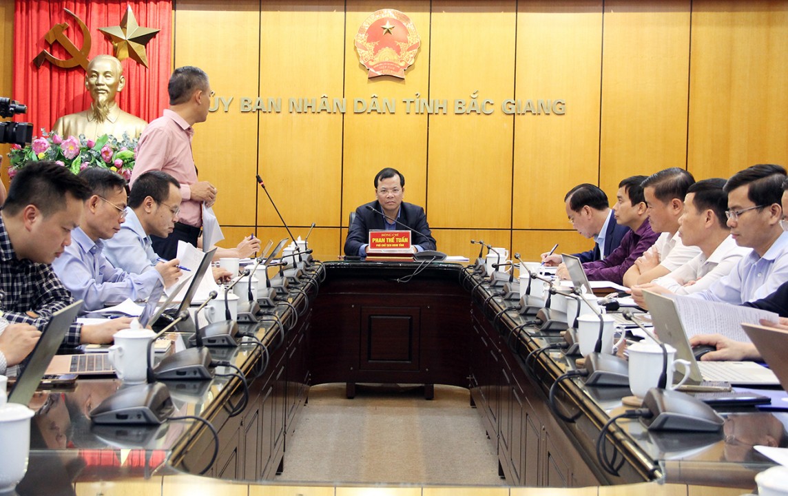 | Phó Chủ tịch UBND tỉnh Bắc Giang Phan Thế Tuấn chủ trì cuộc họp (Ảnh: Thảo My) |
