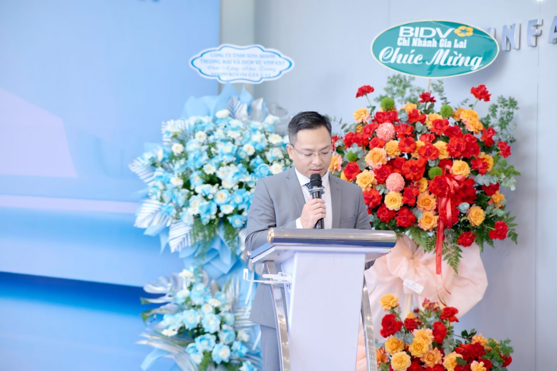 | Ông Hoàng Anh – Tổng Giám Đốc VinFast Gia Lai phát biểu tại lễ khai trương. |