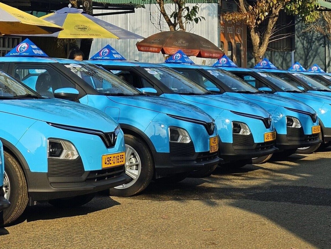 | Hãng taxi Lado tại Tâm đồng sử dụng xe điện VinFast chạy dịch vụ. |