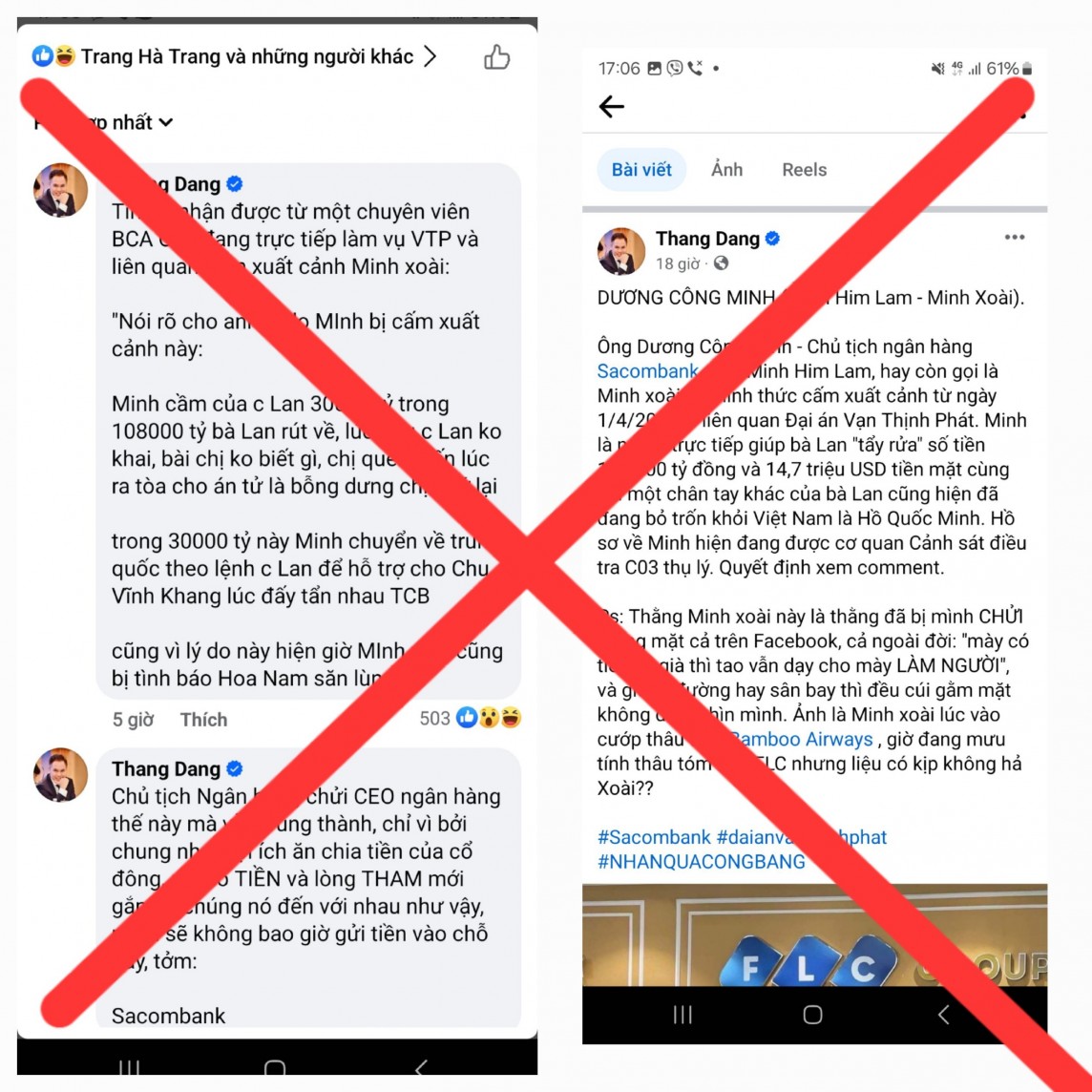 “Ông Dương Công Minh, Chủ tịch HĐQT Sacombank hoàn toàn không liên quan đến vụ án Vạn Thịnh Phát, không bị cấm xuất cảnh theo thông tin Facebook mang tên “Thang Dang” đang lan truyền”, bà Nguyễn Đức Thạch Diễm cho biết và đề nghị các cơ quan chức năng xử lý nghiêm hành vi của ông Đặng Tất Thắng.