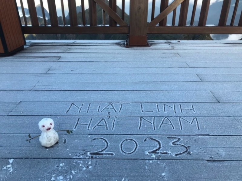 Theo thông tin từ Khu du lịch Sun World Fansipan Legend, trên khu vực đỉnh Fansipan cao 3.143m so với mực nước biển đã xảy ra hiện tượng sương muối, tạo ra lớp băng mỏng.
