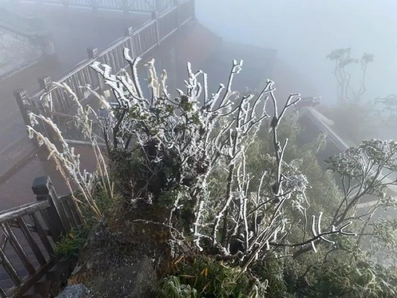 Theo thông tin từ Ban Quản lý Khu du lịch Sun World Fansipan Legend, do ảnh hưởng của không khí lạnh với nền nhiệt xuống dưới 0 độ C, từ 5h30 phút sáng 5/1/2025, trên đỉnh Fansipan, thị xã Sa Pa, Lào Cai đã xuất hiện băng giá, tạo nên khung cảnh đẹp mắt.