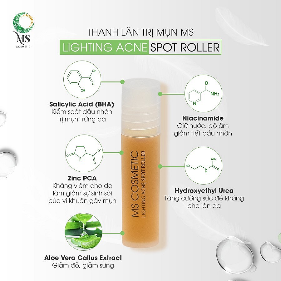 Là sản phẩm nổi bật của thương hiệu Ms Cosmetic, thanh lăn mụn Lighting Acne Spot Roller hội tụ nhiều ưu điểm của dược mỹ phẩm thiên nhiên. Vừa phát huy hiệu quả đặc trị mụn thâm, vừa làm dịu và phục hồi da khỏe đẹp từ bên trong.