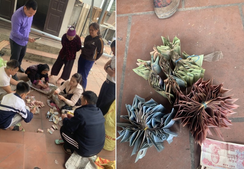 Khi dọn đồ của bà Khanh, con cháu thấy có nhiều bao tải, túi ni lông đựng quần áo cũ rách... nên định vứt bỏ. Tuy nhiên khi thấy mọi người định vứt bỏ đồ, bà nhất quyết giữ lại. Khi mở đồ ra kiểm tra anh Sự phát hiện, lẫn trong những đồ dùng đã cũ như chiếc bát sắt, chai dầu ăn hết hạn... là những bọc nhỏ được gói trong nhiều lớp túi ni lông, giấy, bao xi măng và cuốn dây rất kỹ và mở ra thì thấy những cuộn tiền giấy đủ các mệnh giá.