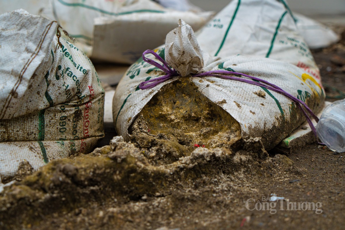 | Kéo dài khoảng 200m, bãi rác này tập kết chủ yếu là rác thải công nghiệp, rác thải xây dựng, kéo theo một số rác thải sinh hoạt và các chất thải khó xác định, được bọc kín bên trong những bao tải |