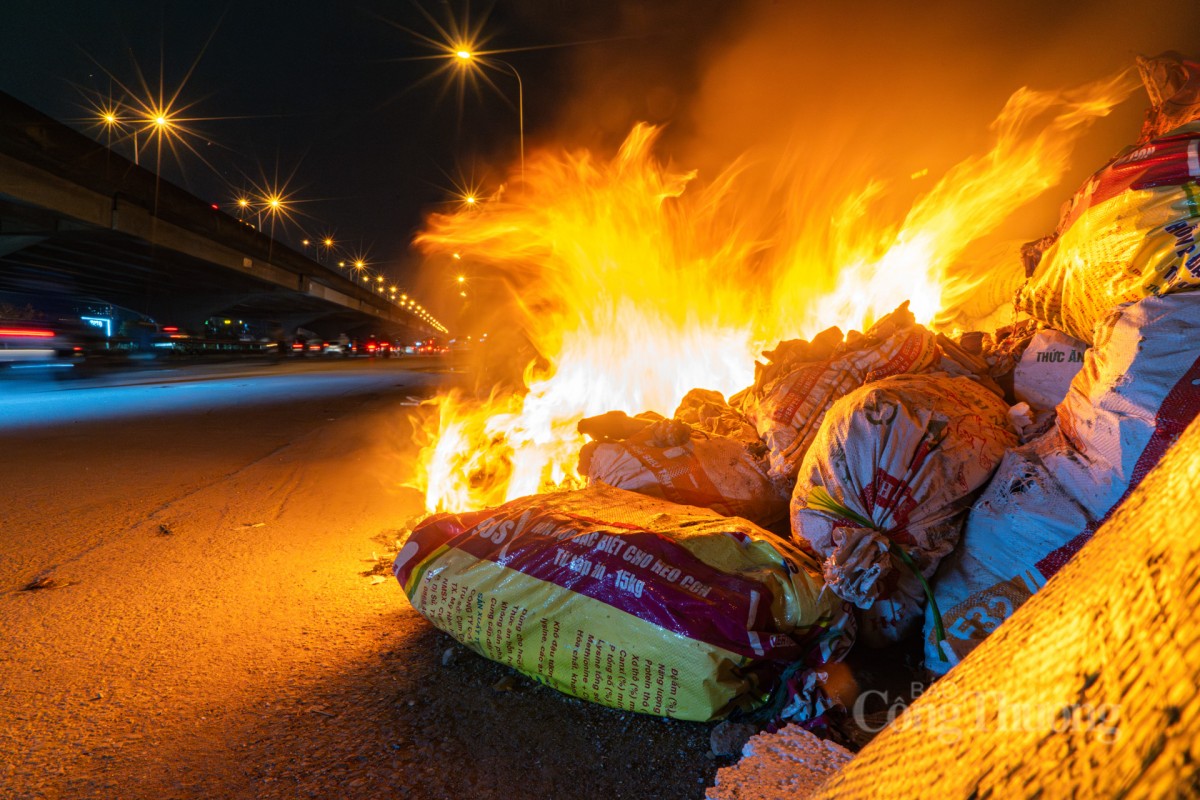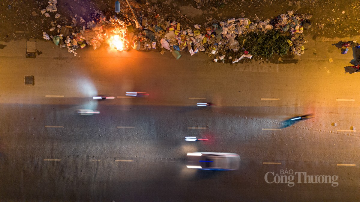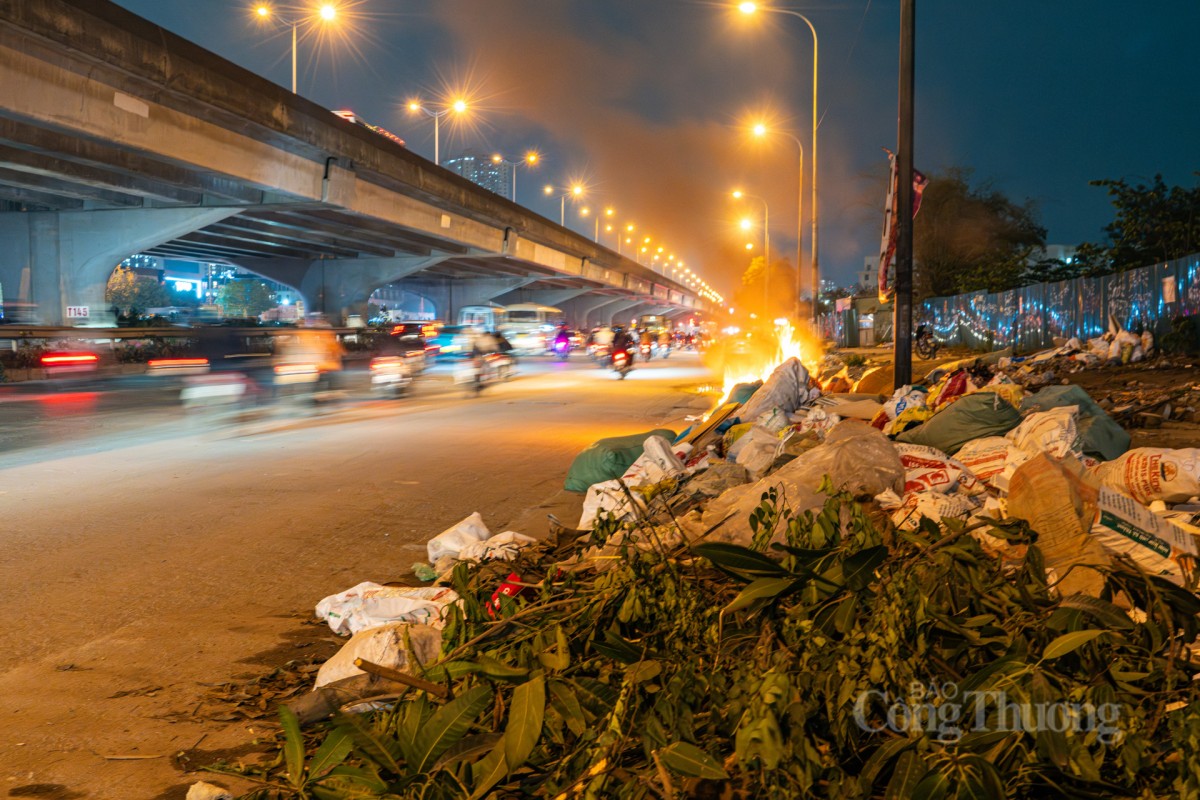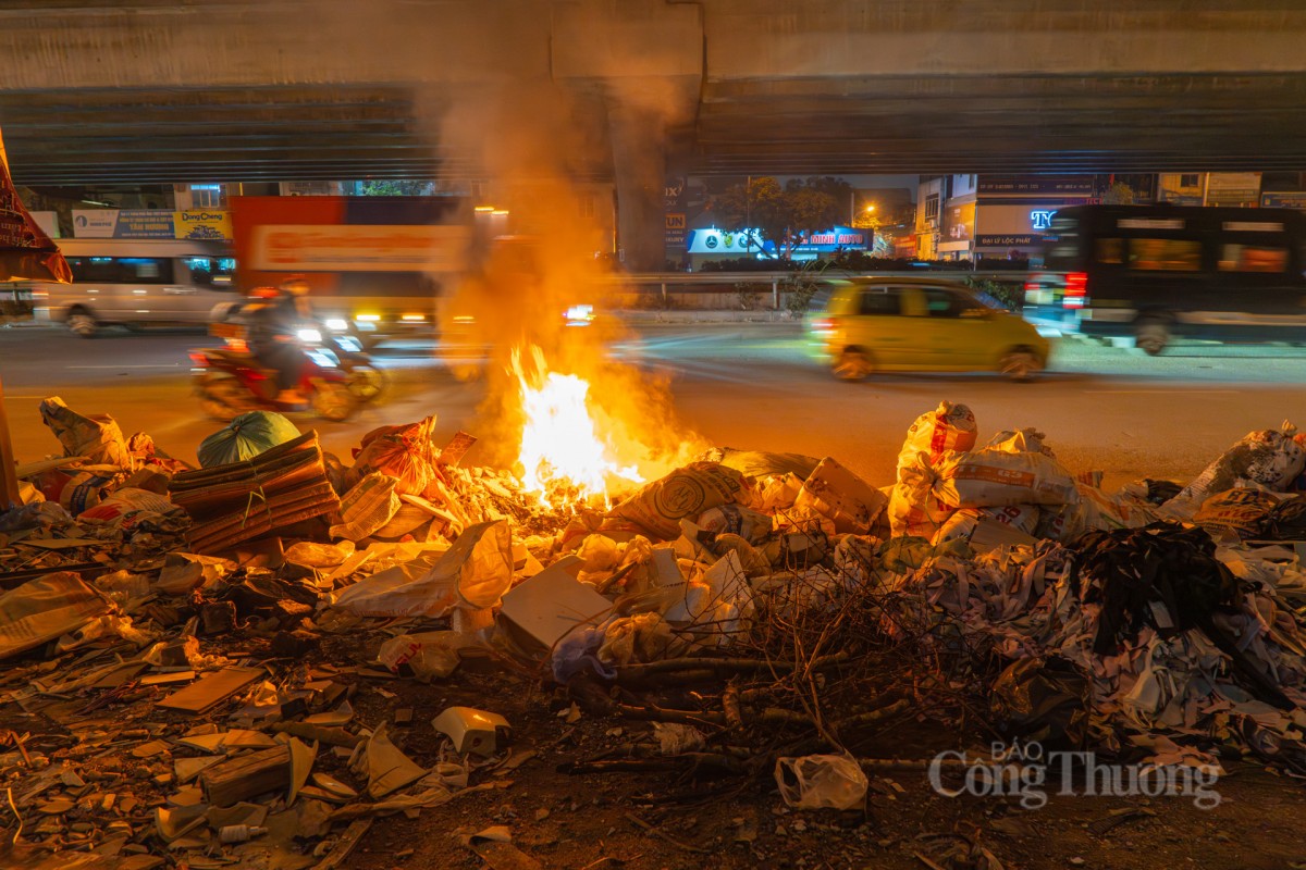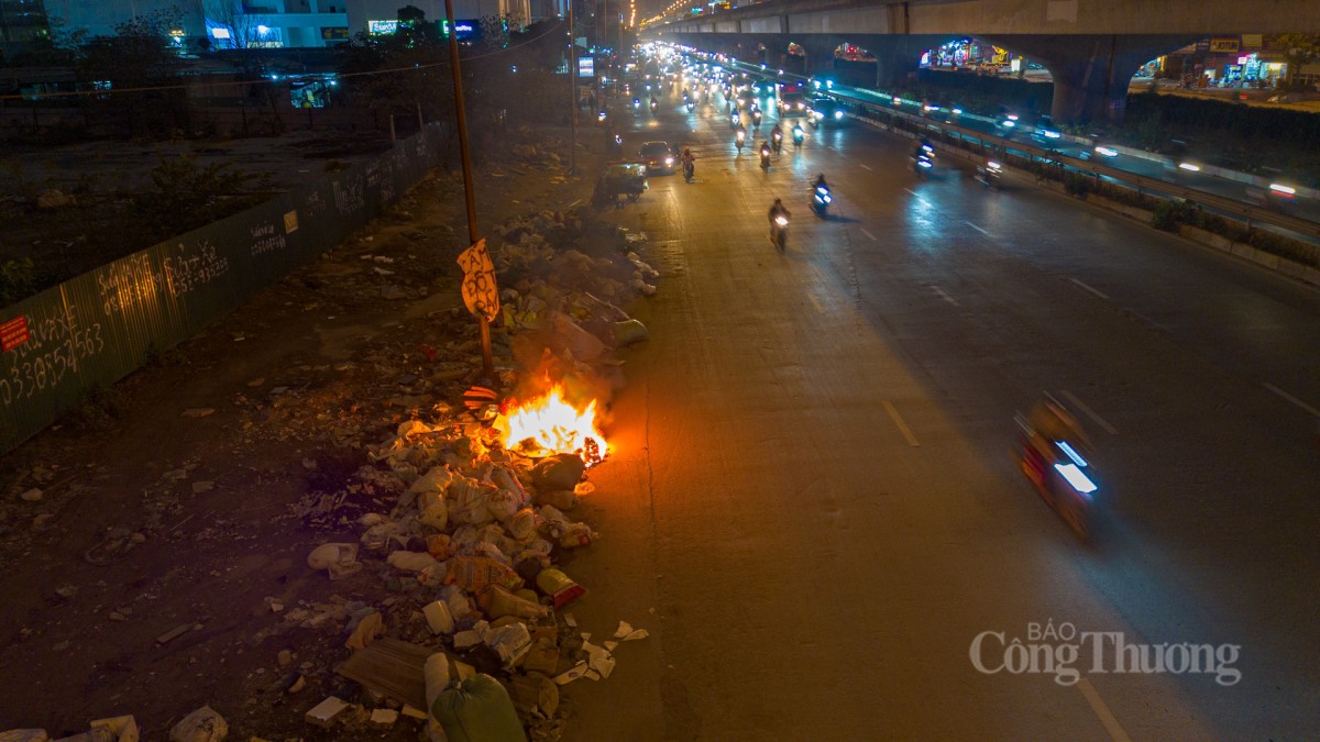 | Rác bị đốt vào thời điểm đông xe cộ qua lại, tràn ra đường, khiến cho việc lưu thông của nhiều người vất vả hơn |