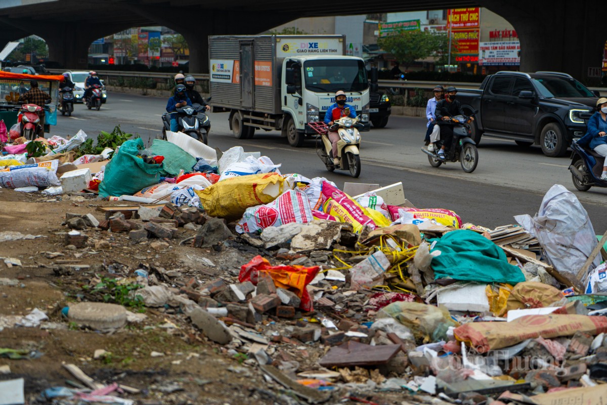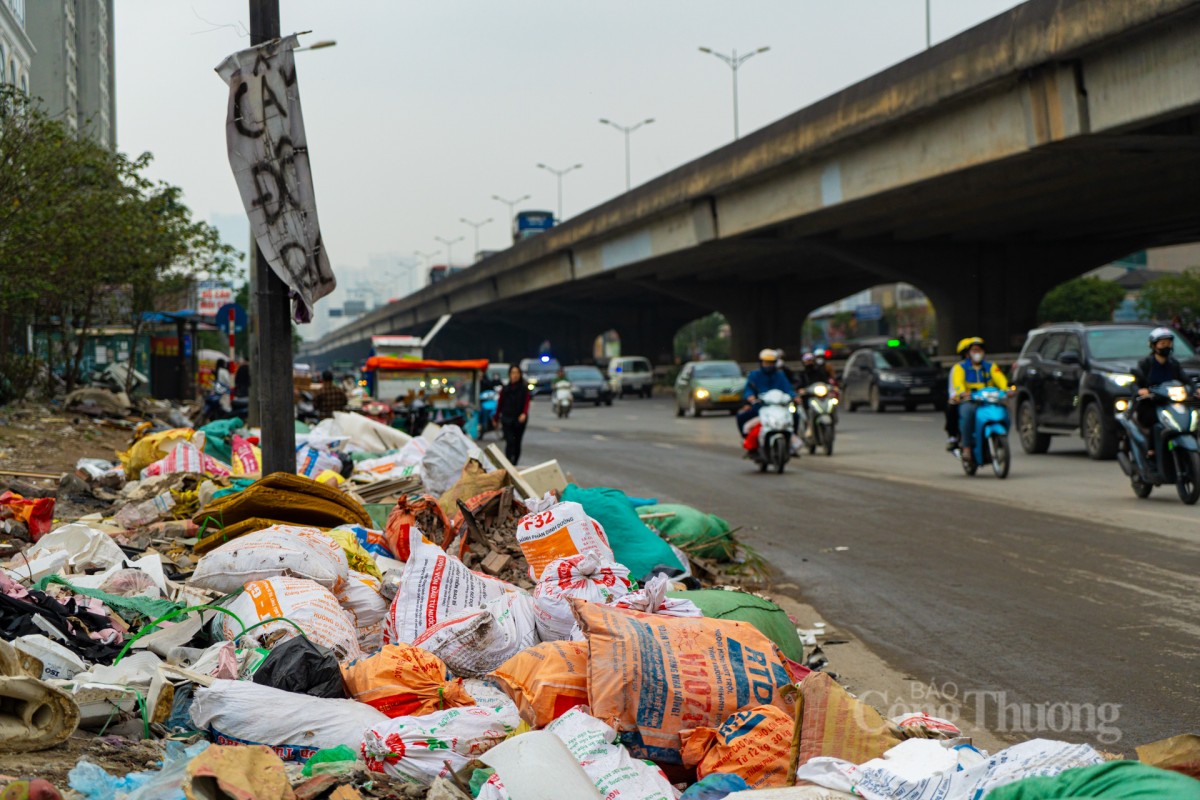 | Rác thải trên đường Nguyễn Xiển thường xuyên tràn xuống lòng đường |
