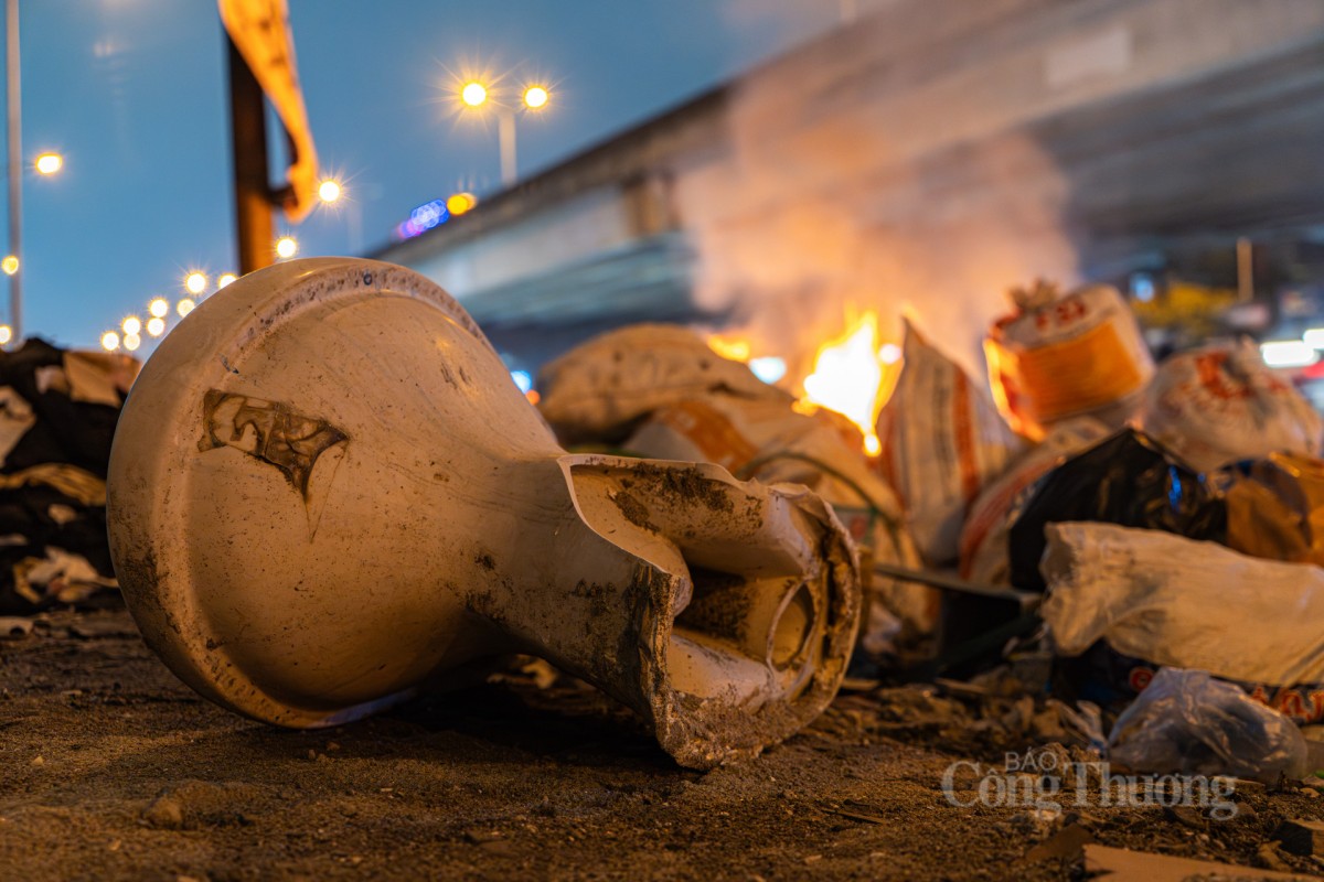 | Rác thải xây dựng là những gì còn sót lại sau mỗi lần đốt rác trộm trên đường Nguyễn Xiển |