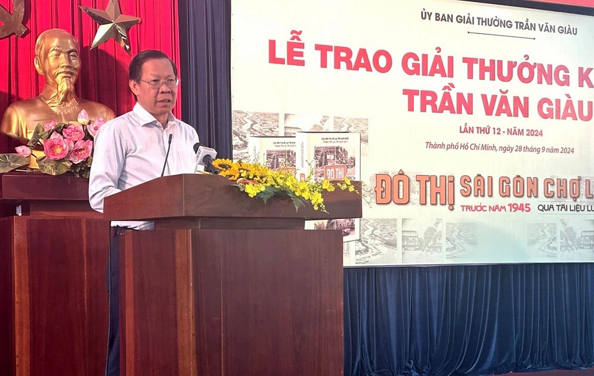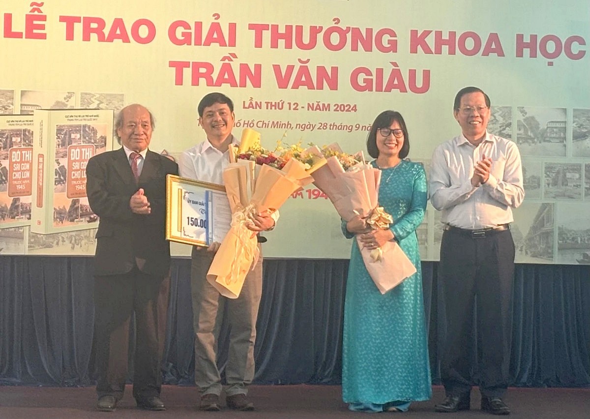 Ngày 28/9, Ủy ban Giải thưởng khoa học Trần Văn Giàu tổ chức công bố và trao Giải thưởng khoa học Trần Văn Giàu - lần thứ 12 năm 2024 cho tác phẩm "Đô thị Sài Gòn - Chợ Lớn trước năm 1945 qua tài liệu lưu trữ" của tác giả Võ Nguyên Phong và Cù Thị Dung, do Nhà xuất bản Tổng hợp TP. Hồ Chí Minh xuất bản và phát hành.