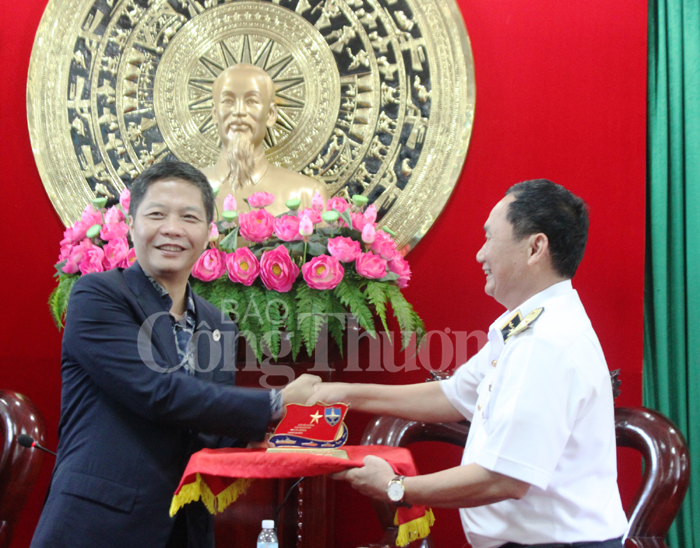 Đại diện Binh chủng Hải quân, Bộ Tư lệnh Vùng 4 Hải quân đã trao tặng nhiều kỷ vật ý nghĩa cho đoàn công tác.