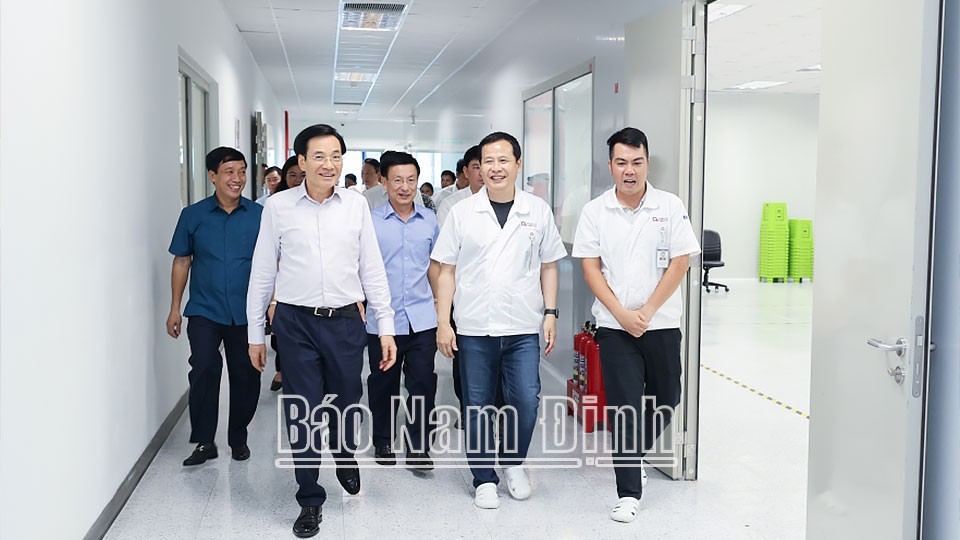 Đoàn công tác của Văn phòng Chính phủ thăm doanh nghiệp sản xuất và dự án đang triển khai trên địa bàn tỉnh Nam Định. Ảnh: Báo Nam Định