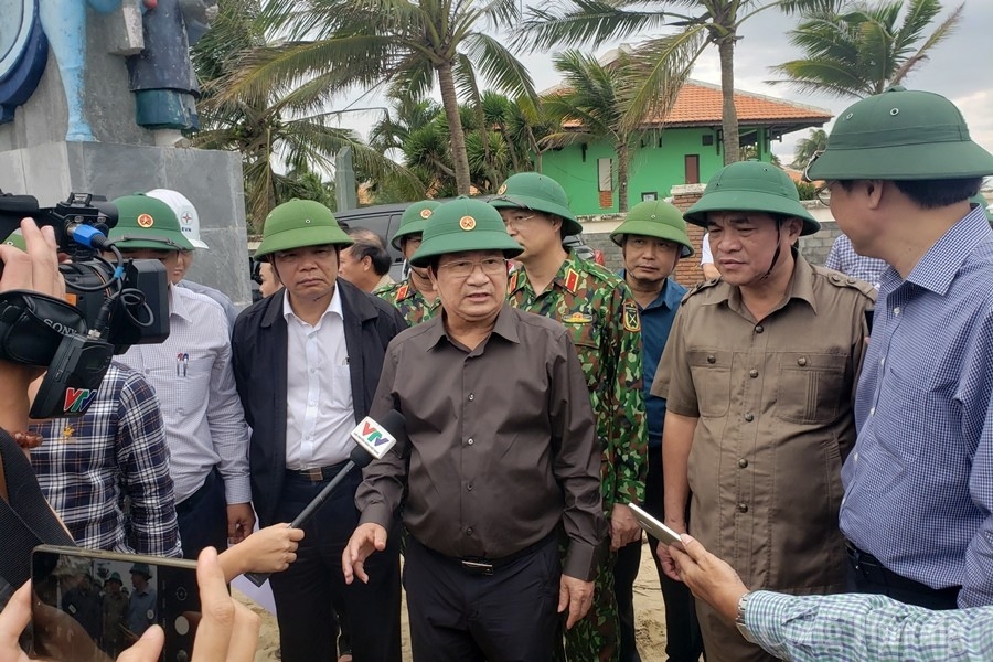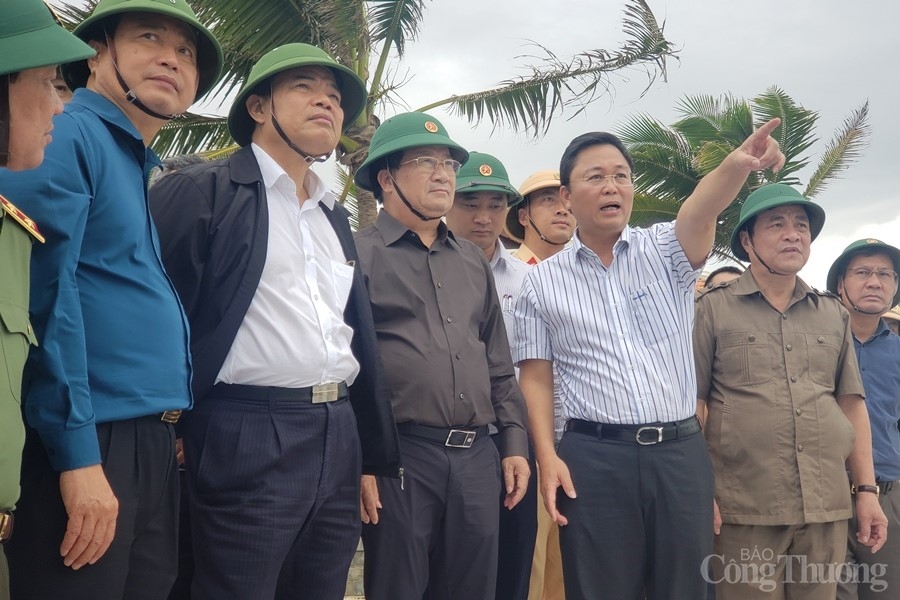| Tại biển Cửa Đại (TP. Hội An), Phó Thủ tướng Trịnh Đình Dũng yêu cầu chính quyền địa phương phải quyết liệt sơ tán người dân khỏi khu vực nguy hiểm, đảm bảo an toàn các công trình, hồ đập |