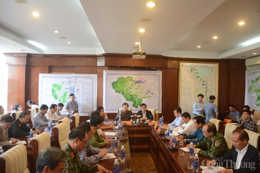 | Toàn cảnh buổi làm việc tại Sở Chỉ huy tiền phương ứng phó với bão số 9 tại Đà Nẵng |