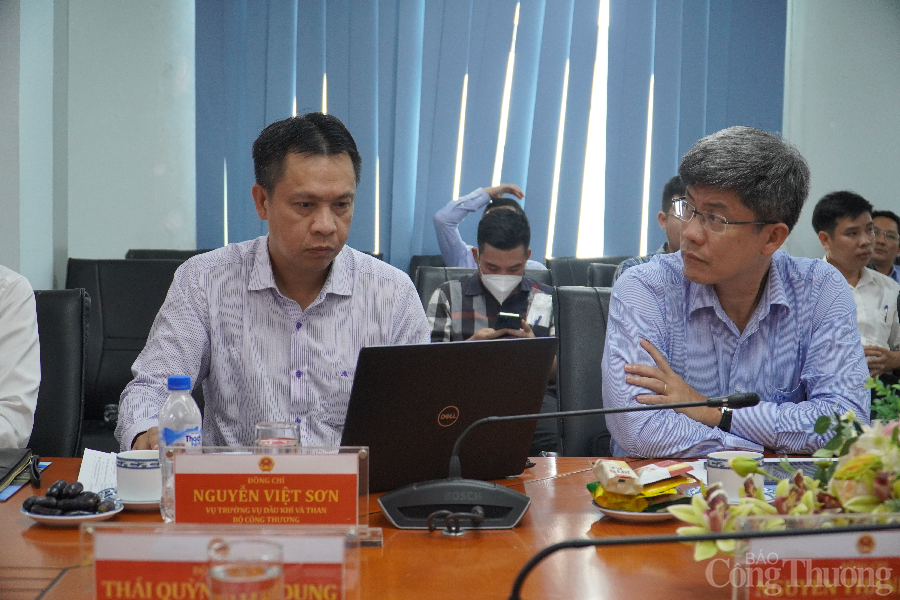 | Ông Nguyễn Việt Sơn (bìa trái) - Vụ trưởng Vụ Dầu khí & Than (Bộ Công Thương) tại buổi làm việc. |