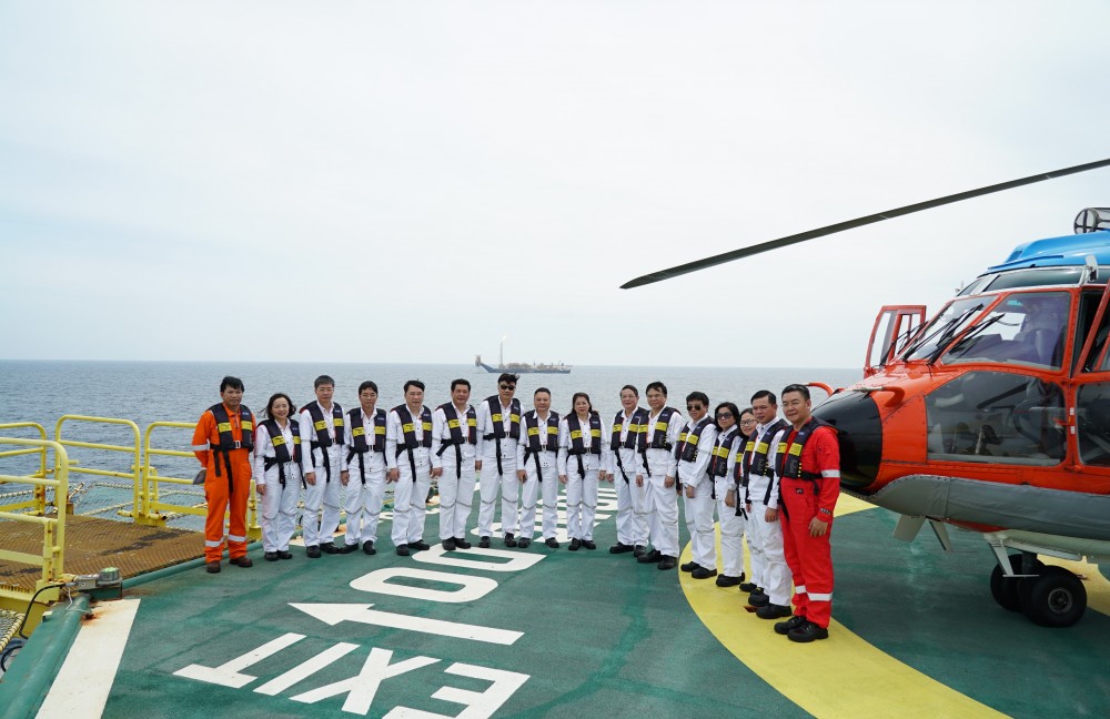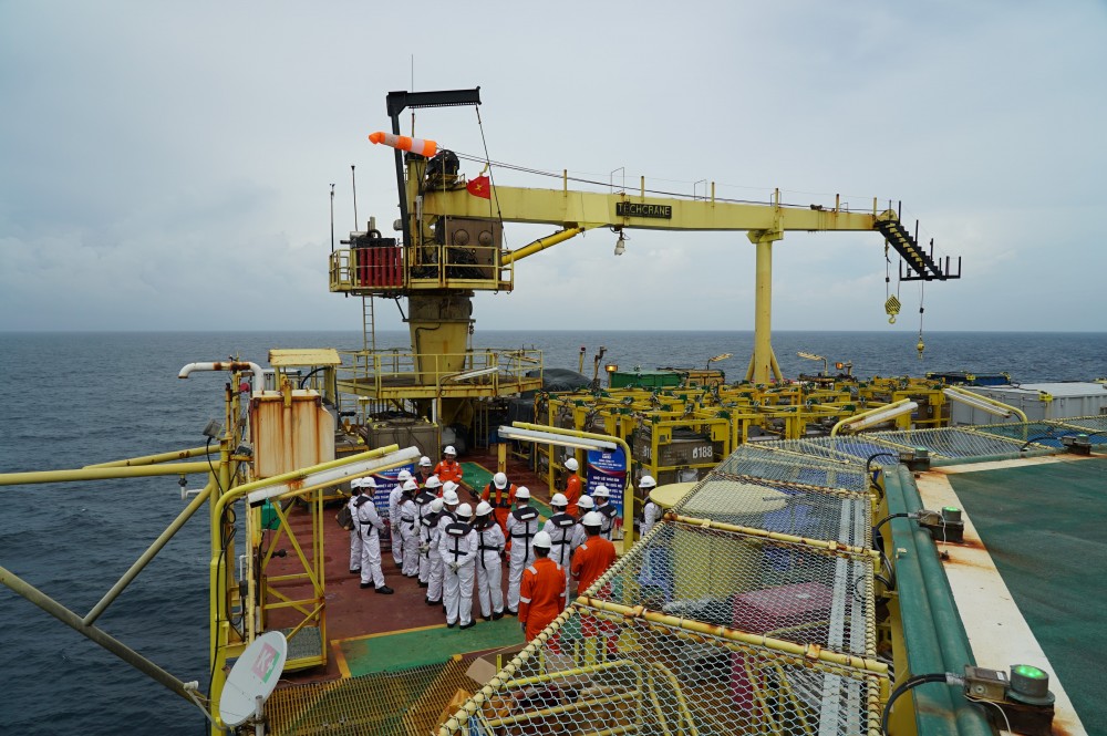 | Đoàn công tác thăm và làm việc tại giàn khai thác Thăng Long - Đông Đô. (Ảnh: Petrotimes) |