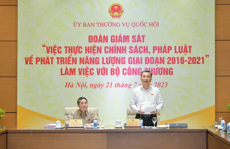 | Thường vụ Quốc hội cho ý kiến về kế hoạch giám sát chính sách năng lượng giai đoạn 2016-2021Đoàn giám sát UBTV Quốc hội làm việc với Bộ Công Thương về thực thi chính sách năng lượng |