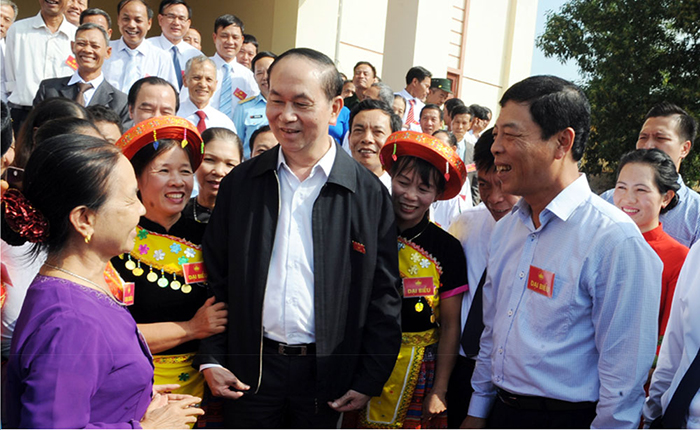 | Chủ tịch nước Trần Đại Quang thăm hỏi bà con xã Tân Hưng |