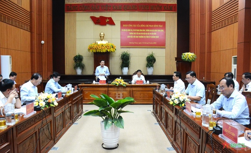 Tại tỉnh Quảng Nam, Đoàn khảo sát Tiểu ban Văn kiện Đại hội XIV của Đảng do đồng chí Phan Đình Trạc, Ủy viên Bộ Chính trị, Bí thư Trung ương Đảng, Trưởng ban Nội chính Trung ương, Thường trực Tiểu ban Văn kiện làm trưởng đoàn.