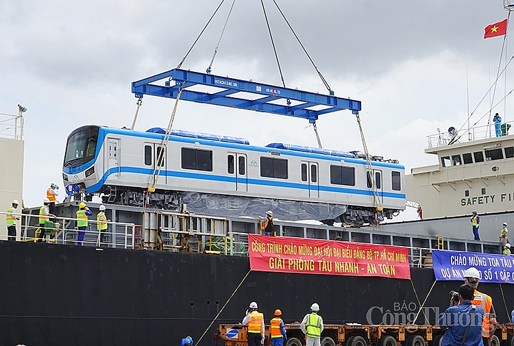Sau hơn một tuần xuất phát từ Nhật Bản, tàu Bayani của Philippines chở đoàn tàu đầu tiên tuyến metro số 1 Bến Thành - Suối Tiên đã cập cảng Khánh Hội, quận 4, TP. Hồ Chí Minh. Đây là đoàn tàu đầu tiên của tuyến metro số 1, gồm 1 đầu tàu và 2 toa tàu với tổng chiều dài 61,5m, tốc độ tối đa thiết kế đoạn trên cao 110km/h và 80km/h đoạn hầm. Đoàn tàu có thể chở tổng cộng 930 khách, trong đó có 147 khách ngồi ghế, 783 khách đứng.
