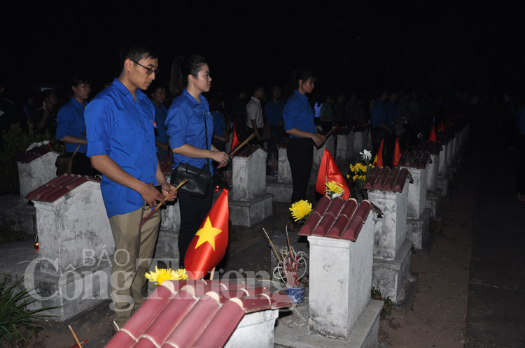 Các đoàn viên thanh niên Bộ Công Thương thắp hương tại Nghĩa trang Kim Sơn |