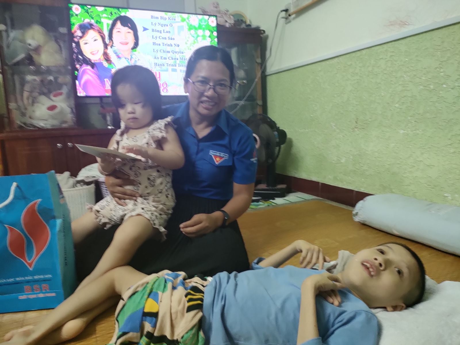| Đoàn thanh niên đến nhà thăm hỏi các con của gia đình BSR có hoàn cảnh khó khăn, khuyết tật |