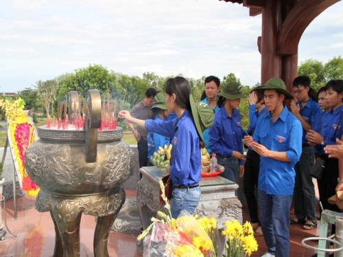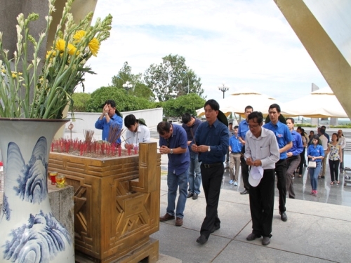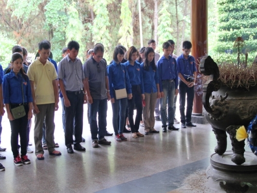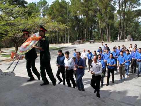 Để tưởng nhớ và tri ân những anh hùng đã hy sinh trong 2 cuộc kháng chiến, Đoàn đã đến thắp hương, viếng, tri ân các anh hùng liệt sĩ tại Nghĩa trang Trường Sơn và Nghĩa trang Quốc gia Đường 9 (Quảng Trị). Vào thăm Thành cổ Quảng Trị, đoàn đã dừng chân thắp hương và tưởng nhớ các anh hùng liệt sĩ tại Tượng đài Thép; Thăm và tặng quà 5 Bà mẹ Việt Nam anh hùng. Tại Hà Tĩnh, đoàn đã vào Nghĩa trang Đồng Lộc để viếng 10 nữ anh hùng liệt sĩ Thanh niên xung phong…