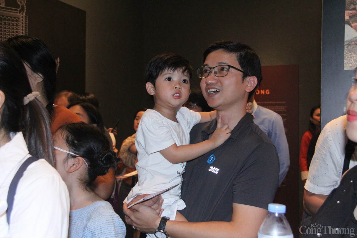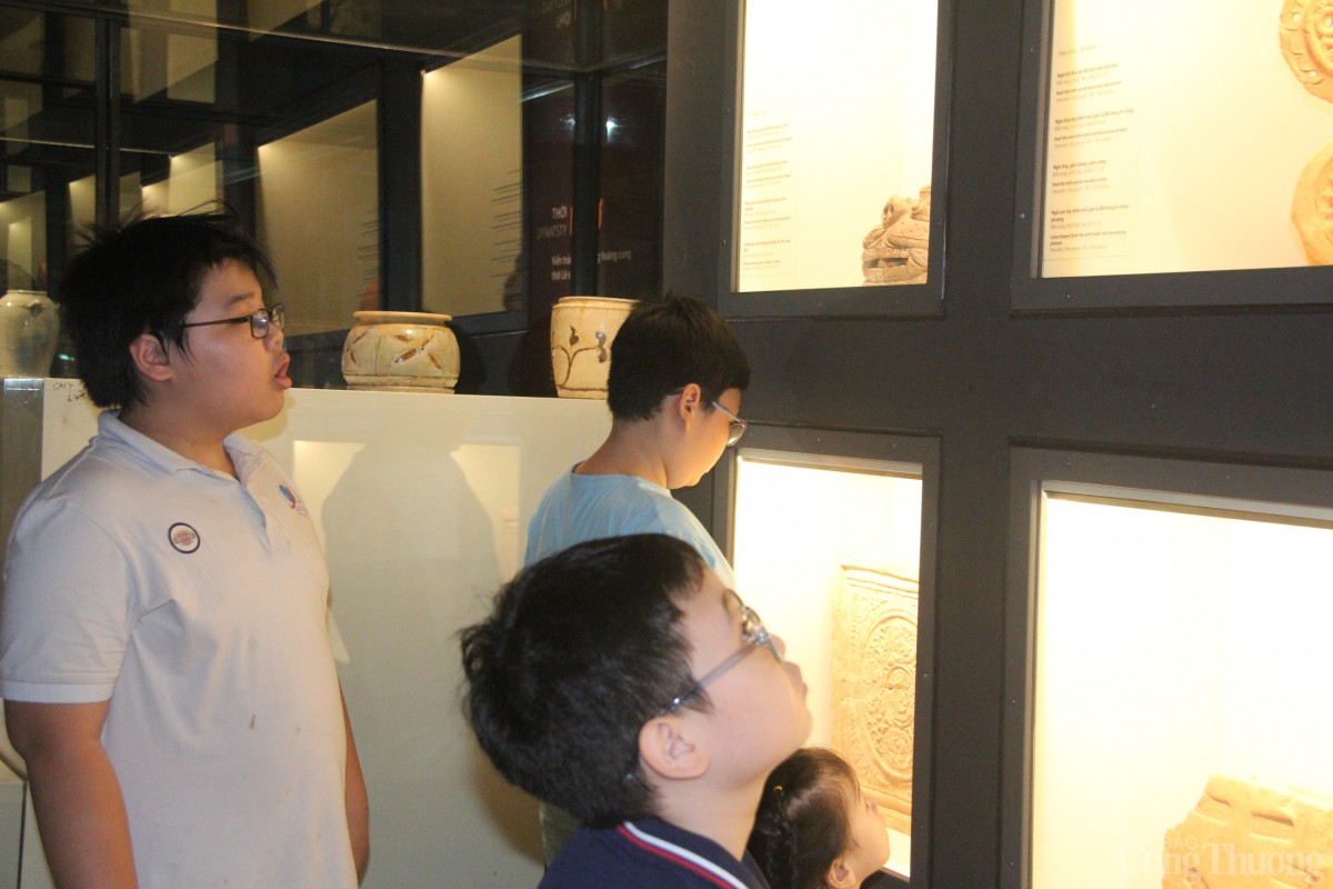 | Đoàn thanh niên tiếp tục chiêm ngưỡng những hiện vật, cổ vật quý giá được tìm thấy tại Hoàng thành Thăng Long trong nhà trưng bày với chủ đề "Thăng Long Hà Nội - Lịch sử nghìn năm từ lòng đất". |